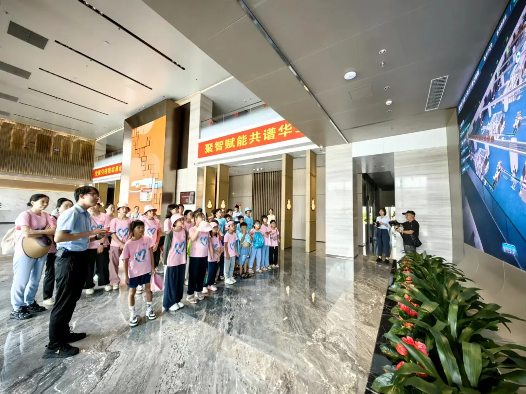活动一开始,孩子们便迫不及待地踏入了人生就是博药业集团的大厅。3D数字化看板上的生动画面,让孩子们仿佛置身于一个充满科技与创新的现代制药工厂。他们瞪大眼睛,好奇地观察着每一条生产线、每一台设备,听着讲解员介绍人生就是博药业的儿药发展历程。